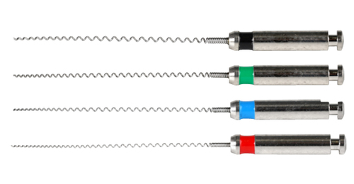 Sterila färgkodade lentulonålar med säkerhetsspiral av rostfritt stål för vinkelstycke.