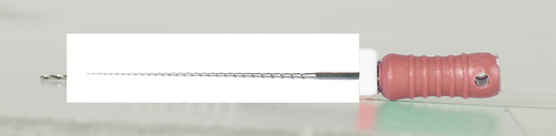 Steril rotkanalsfil enligt Hedström av rostfritt stål med filstopp och  färgkodat skaft.