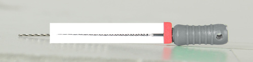 Steril K-fil av rostfritt stål med filstopp och färgkodat plastskaft.