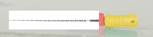 Steril K-fil av rostfritt stål med filstopp och färgkodat plastskaft.