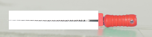 Steril K-fil av rostfritt stål med filstopp och färgkodat plastskaft.