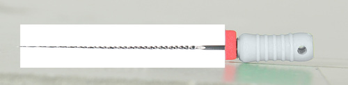 Steril K-fil av rostfritt stål med filstopp och färgkodat plastskaft.