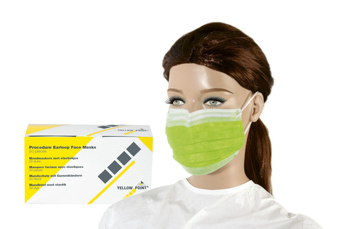 3-lagers munskydd med näsklämma och elastiska öronsnoddar. Lågt andningsmotstånd. Stänkbeständigt inre och yttre skikt, Stänkmotstånd 60 kPa, BFE ≥98%, andningsmotstånd ΔP <60,0 Pa/cm2. Klass IIR, EN 14683:2019+C1:2019.