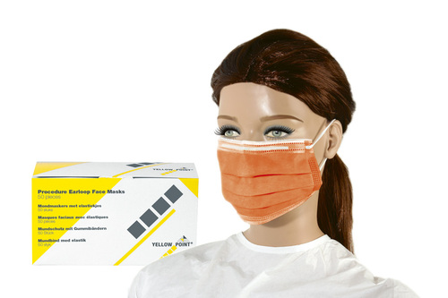 3-lagers munskydd med näsklämma och elastiska öronsnoddar. Lågt andningsmotstånd. Stänkbeständigt inre och yttre skikt, Stänkmotstånd 60 kPa, BFE ≥98%, andningsmotstånd ΔP <60,0 Pa/cm2. Klass IIR, EN 14683:2019+C1:2019.