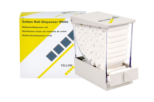Yellow Point dispenser för bomullsrullar. Kan rengöras med alkoholdesinfektionsservetter, använd ej autoklav eller termodesinfektor. Dispensern är ganska tung och stadig. På undersidan är två lister fästa för att förhindra glidning.