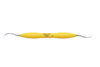 Curette av rostfritt stål för avlägsnande av djup subgingival tandsten och finishering av subgingivala rotytor på mesialytor hos molarer, mer vinklad i halsen än Gracey 11-12. Skaftet hålls då mer horisontalt vilket underlättar arbetet bl.a. om patienten inte kan öppna munnen tillräckligt. Ergonomiskt gult silikonhandtag, Ø 12 mm.