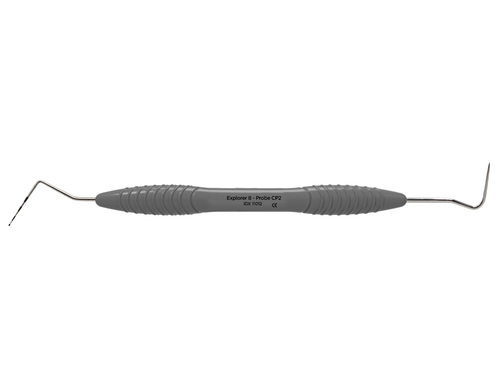 Dubbeländad rak undersöknings- och fickmätningssond med kula av rostfritt stål och gradering 2-4-6-8-10-12 mm. Ergonomiskt grått silikonhandtag, Ø 12 mm.