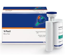 V-Posil avtrycksmaterial är additionspolymeriserande, elastomera material med hydrofila egenskaper, hög rivhållfasthet, dimensionsstabilitet och högt motstånd mot permanent deformation och utmärker sig med en särskilt hög initial vätbarhet. V-Posil Mono Fast används som medium body sked- eller sprutmaterial vid avtryck för: avtryck över fasta/avtagbara restaurationer och implantat (t.ex. överföring av avtrycksstift och brokomponenter), funktionella avtryck, framställning av kronor, broar eller inlägg, framställning av hel- eller partialproteser, rebaseringsavtryck, överföring av rotstift vid indirekt framställning av stift och pelare, flerskedsteknik och används såväl för enstegsteknik som för putty-washteknik i två steg.