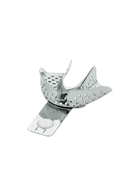 Rostfri perforerad avtryckssked utan retentionskant för underkäke.