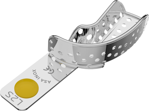 Rostfri perforerad avtryckssked med retentionskant för underkäke. Mått: