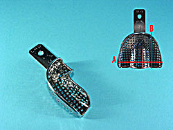 Rostfri perforerad avtryckssked med retentionskant för underkäke. Mått: