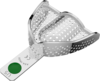 Rostfri perforerad avtryckssked med retentionskant för överkäke. Storlek:Large. Grön färgkodning.