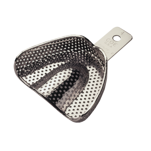 Förkromad och perforerad avtryckssked med retentionskant. För tandförsedd överkäke. Nr 3, 73/64/22 mm. Autoklaverbar 125°.