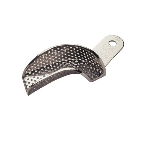 Partiell förkromad och perforerad avtryckssked med retentionskant, Nr 30 vänster ök/ höger uk, 44/62/19 mm. Autoklaverbara 125°.