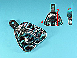 GC. Förkromade och perforerade. Autoklaverbara 125°. Med retentionskant. För tandlös överkäke. Nr 63, 70/67/14 mm