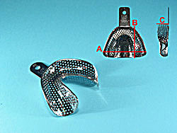 GC. Förkromade och perforerade. Autoklaverbara 125°. Med retentionskant. För tandlös underkäke. Nr 68, 73/60/10 mm