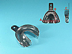 GC. Förkromade och perforerade. Autoklaverbara 125°. Med retentionskant. För tandlös underkäke. Nr 69, 54/54/16 mm