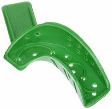 Grön partiell engångssked, 31D överkäken höger eller underkäken vänster. Tillverkad i styv plast vilket ger tillräcklig precision för flertalet indikationer. Har ett unikt sick-sack mönster i skeden vilket minimerar risken för kusp kontakt med skeden. Starkt inbyggt handtag för enkelt placerande och avlägsnande av avtryckskeden. Anatomisk design. Rimlockkanter låser kvar avtrycksmaterialet i skeden.