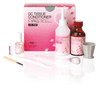 90g pulver, 101ml vätska, 15ml coating, accessoarer. Rosa.
