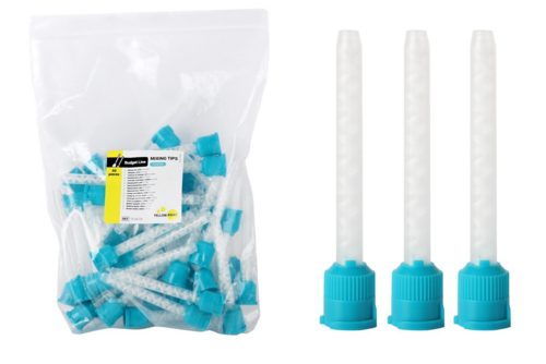 Gröna blandningsspetsar för högviskösa (tjocka) avtrycksmaterial i ampull för blandningspistol. Blandningsproportion 1:1.