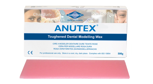 Modellvax som används för att skapa preliminära protesbaser. Det är är lätt att trimma och forma och mjuknar utan att bli smuligt. Vaxet är lukt- och smakfritt och irriterar inte munslemhinnorna. Anutex vax deformeras inte nämnvärt i munnen och fastnar inte på fingrarna, vilket gör det idealiskt för högkvalitativt protetiskt arbete.