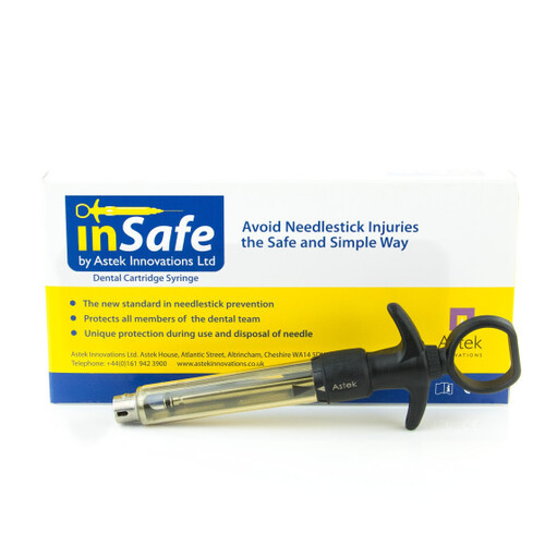 inSafe ger optimalt skydd mot nålsticksskador. Den specialdesignade sprutan med integrerat skyddslock skyddar nålen under hela proceduren, och den tillhörande kanylbehållaren kasserar nålarna säkert utan kontakt.