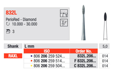 Diamant 832L Perio Red Lång, Spetsig knopp RAXL 014, Blå