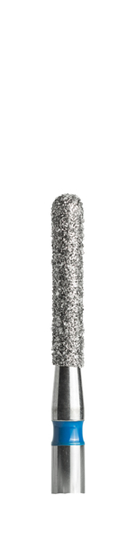 Topprundad cylinder, engångsdiamant med FG-fattning för preparation. Grovlek: Medium. Blå ring.