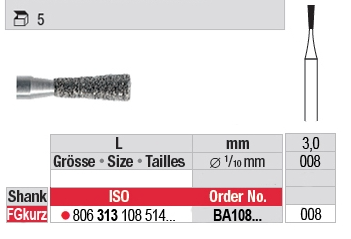 Omvänd konisk putsdiamant med kort skaft och FG-fattning.