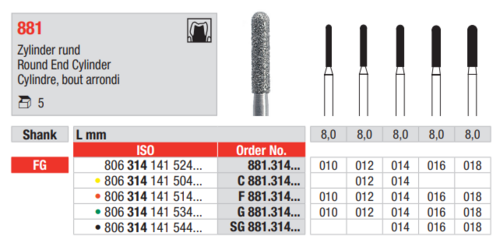 Diamantborr cylinderform med rund topp, medium kornstorlek och FG-fattning.