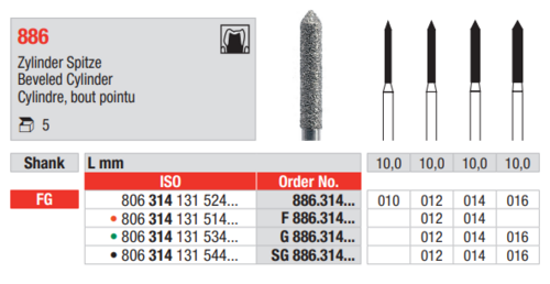 Diamantborr cylinderform med spetsig topp, medium kornstorlek och FG-fattning.