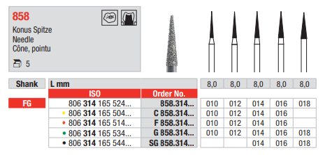 Konisk spetsig (nålformad) preparationsdiamant med FG-fattning.