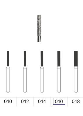Cylinderformad preparationsdiamant med rak topp och FG-fattning. Skaft: 19 mm. Kornstorlek: Medium.