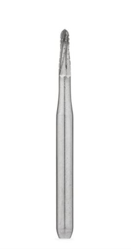 Tvärhuggen fissurborr, med rundad avsmalnande topp, för avlägsnande av guld, amalagam och porslin, till highspeed.