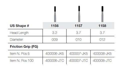 Rak fissurborr med rund topp av hårdmetall med FG-fattning (friction grip) för turbin.