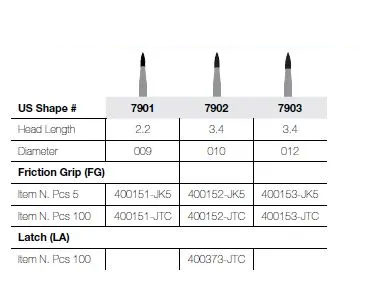 Nålformad 12-bladig finisheringsborr av hårdmetall med FG-fattning. ISO nr - 009. Huvud längd 2,2.