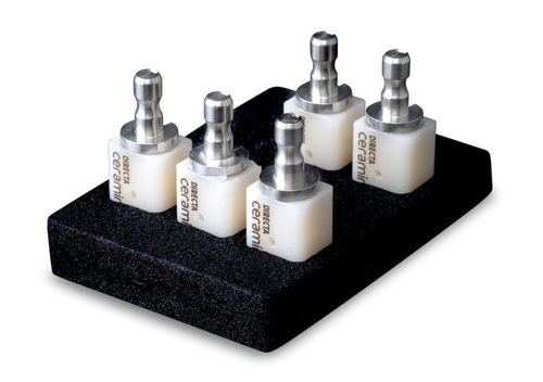 Translucenta CAD/CAM block som liknar naturlig emalj med distanshål ø L för implantatstödd protetik.