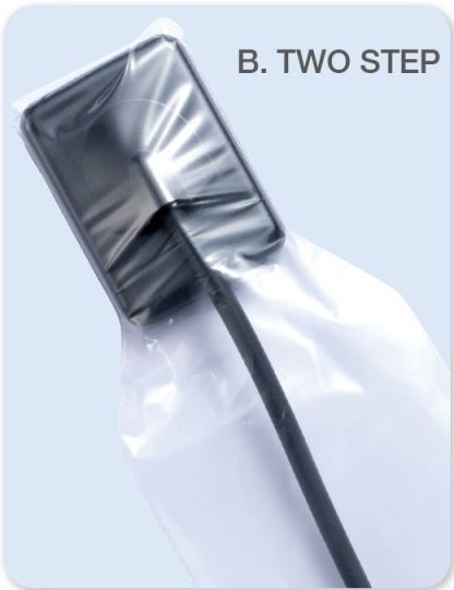 Transparent hygienskydd för röntgensensorer storlek 2 vuxen. Av mycket mjuk och  smidig polyplast för en större taktil känsla. Lätt att trä på sensorn. För engångsbruk.