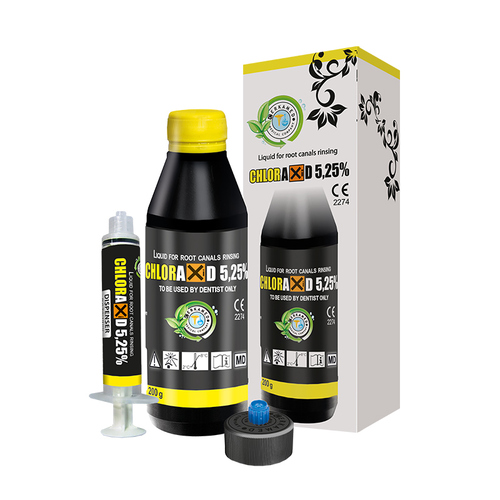 Vätska för spolning av rotkanaler (natriumhypoklorit 5,25 %) + märkt dispenser