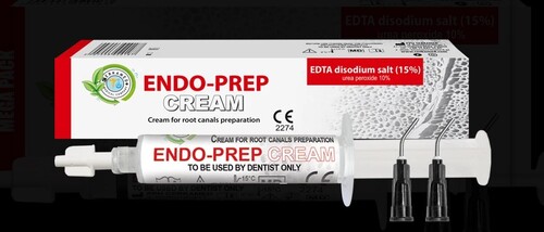 Cerkamed ENDO-PREP CREAM är en endodontisk kräm för kemomekanisk preparation av rotkanaler. Formulan är utvecklad för att mjuka upp den ytliga dentinen och stödja effektiv rengöring och formning av kanalen under instrumentering.