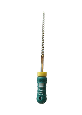 Sterila K-filar av rostfritt stål och med färgade plasthandtag. Filarna är försteriliserade i blisterförpackning, färdiga att användas direkt. Längd 21 mm nr 070, färgkod - grön.