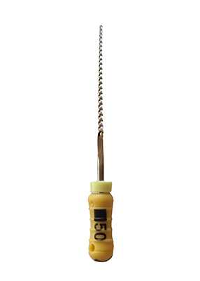 Sterila K-filar av rostfritt stål och med färgade plasthandtag. Filarna är försteriliserade i blisterförpackning, färdiga att användas direkt. Längd 21 mm nr 050, färgkod - gul.