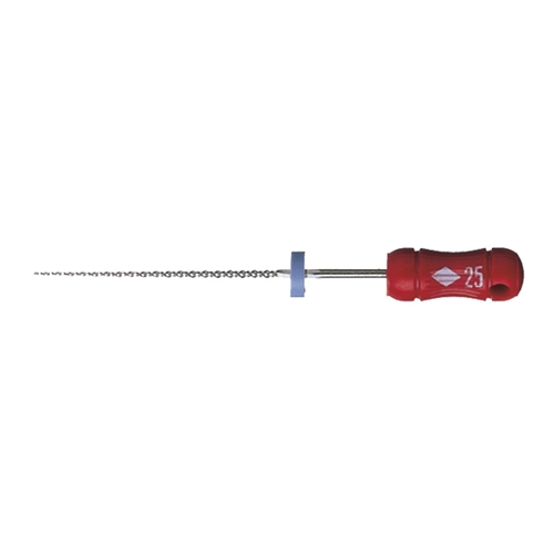 Flexibel handfil i rostfritt stål, med filstopp. 6 filar i förpackningen. Plastskaft med färgkodning.