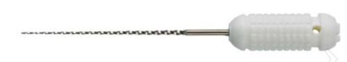 Rotkanalsfil i rostfritt svenskt stål och filstopp med öppen spiraldesign med tre skäreggar