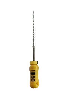 ISO 50, längd 21 mm. Rotkanalsfilar med säkerhetsspets, "bat tip", vilket underättar rensningen i böjda kanaler. Halkfria handtag i plast. Är en K fil i grunden, men i NiTi material.