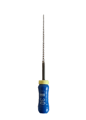ISO 30, längd 25 mm. Rotkanalsfilar med säkerhetsspets, "bat tip", vilket underättar rensningen i böjda kanaler. Halkfria handtag i plast. Är en K fil i grunden, men i NiTi material.