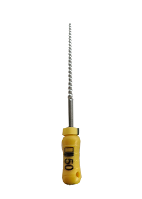 ISO 50, längd 25 mm. Rotkanalsfilar med säkerhetsspets, "bat tip", vilket underättar rensningen i böjda kanaler. Halkfria handtag i plast. Är en K fil i grunden, men i NiTi material.