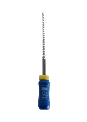 ISO 60, längd 25 mm. Rotkanalsfilar med säkerhetsspets, "bat tip", vilket underättar rensningen i böjda kanaler. Halkfria handtag i plast. Är en K fil i grunden, men i NiTi material.