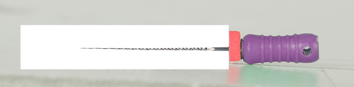 Steril K-fil av rostfritt stål med filstopp och färgkodat plastskaft.