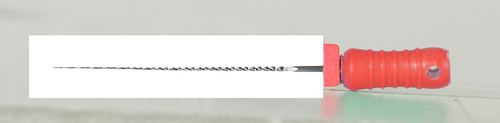 Steril K-fil av rostfritt stål med filstopp och färgkodat plastskaft.